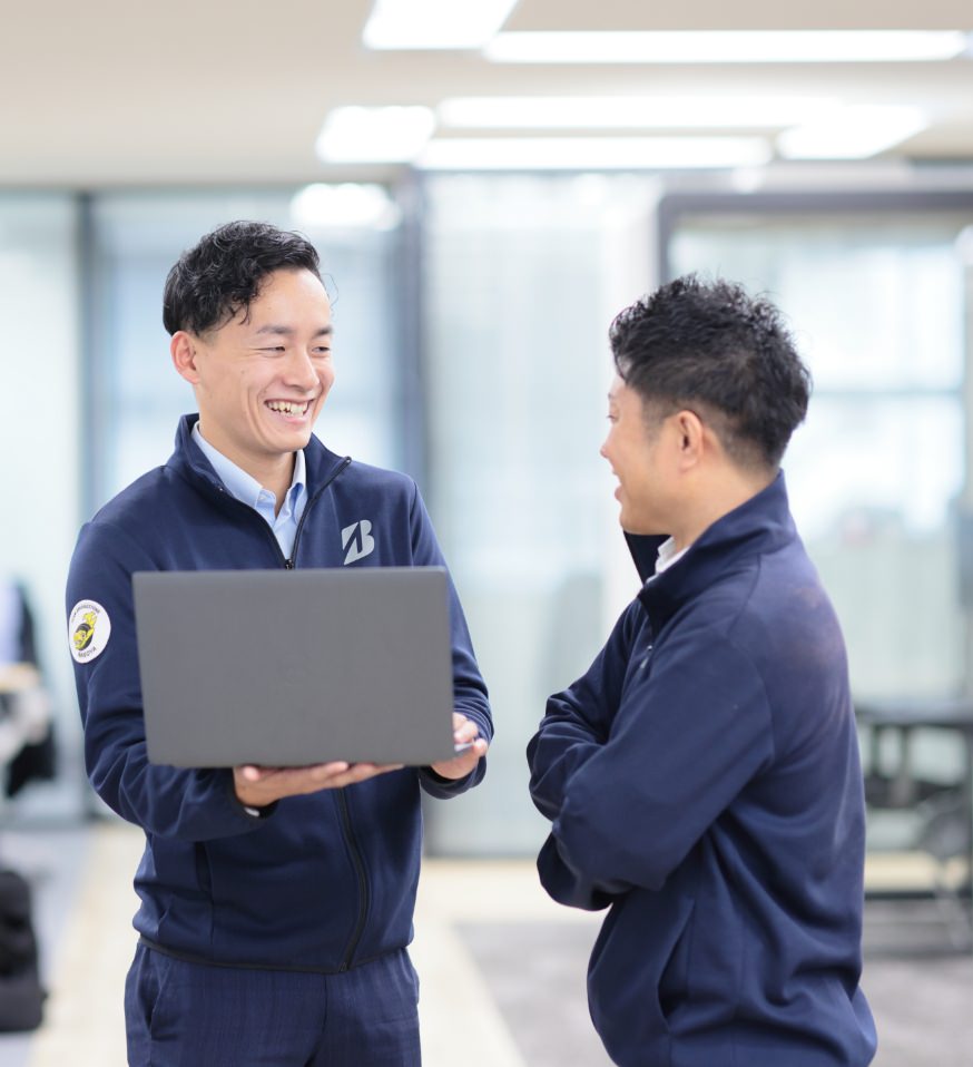 私は現在、中部エリアのお客様を対象に、ネット集客の支援など、経営課題の解決をサポートするソリューション提供に携わっています。俯瞰してみると「本社が企画したサービスを、現場に浸透させて、お客様ごとにカスタマイズして提供していく」という役割のポジションです。「お客様に寄り添って、より良いタイヤの使い方を提案する」という営業やマーケティングの基本を学んでいる段階にあるのだと思います。今の業務を通して、私には身に付けたいことがあります。それは、相手の視点に立つこと。現在の部署では社内外多くの方とかかわるチャンスがあると思っています。それぞれの立場や考え方も違う方々とかかわりながら、相手の視点に立って業務を推進していく力を身に着けたいと思っています。業務 経験とコミュニケーション力を培って、それをベースに事業の中枢でサービスを企画する側の業務にチャレンジすることが将来の目標です。自分のアイディアが、サービスやソリューションと呼ばれ形になり、ブリヂストンが有する多くのファミリーやパートナーの皆さんを介して、世界中に届けられていく。そんな姿を想像すると、意欲が湧いてきます。