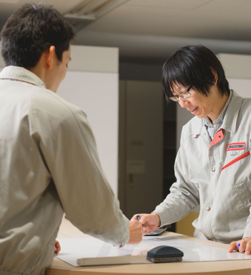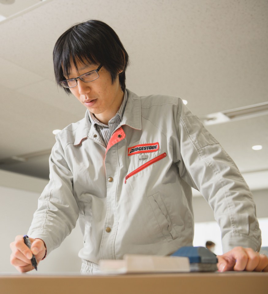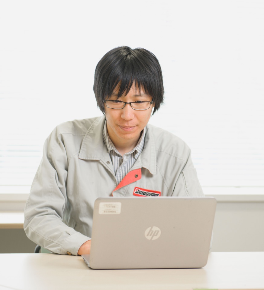 新構造・高性能・超軽量といった次世代タイヤを開発するための製造設備について、基礎検討からシステム導入までの業務を担当しています。中にはこれまでコントロールできなかったタイヤの特性にまで及ぶ開発もあり、そういった中で新たな知見を得られることが技術者として面白いところです。そして開発した設備でタイヤの性能アップが実現できたとき、大きなやりがいと達成感を感じます。成型工程はタイヤの根幹。ブリヂストンはその設備を内製しているため、新たなタイヤを開発する際、柔軟に設備を変えることが出来ます。それにより、より良い商品をスピーディーに生み出せることが、当社の強みでもあるのです。だからこそ、私たち生産設備の生産技術者がいなければ次世代タイヤは実現できない、という自負があります。そんな開発に携われること自体が私の仕事の醍醐味です。