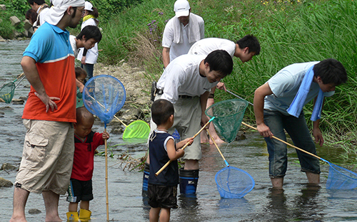 従業員とその家族、地域の方々などが活動に参加し、参加者はどういった生き物がそこにいるかを自分自身の手で実際に調べ、専門家の方から説明を受け、そこで見つけた生き物、そしてその生き物が暮らす環境への理解を深めています。