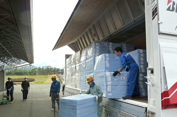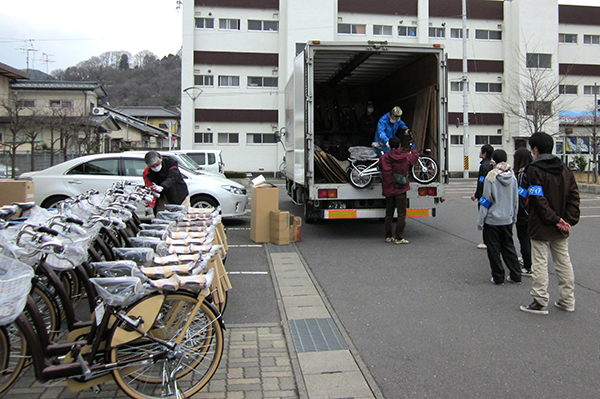 ブリヂストングループでは震災発生直後、義援金とグループ製品(自転車及び寝具)計3億7,700万円相当を被災者の皆様に寄贈しました。