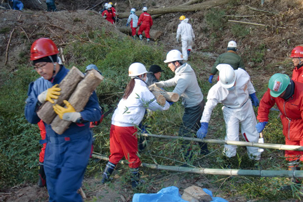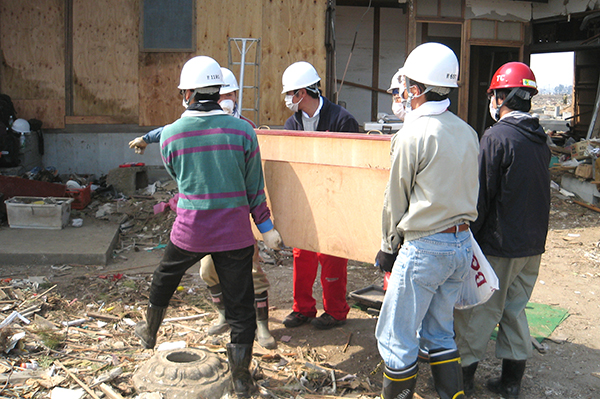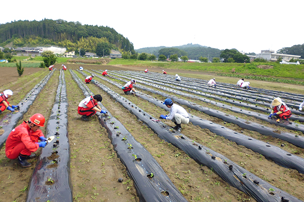 2011年4月より従業員によるボランティア活動を始め、2017年までに計72回、累計1,500名を超えるグループ従業員およびその家族が参加しました。また都内では、NPO法人医療ネットワーク支援センターと協力し、被災され、関東へ避難されている方の支援も行いました。震災発生直後は主に瓦礫の片づけなどの復旧作業を実施。