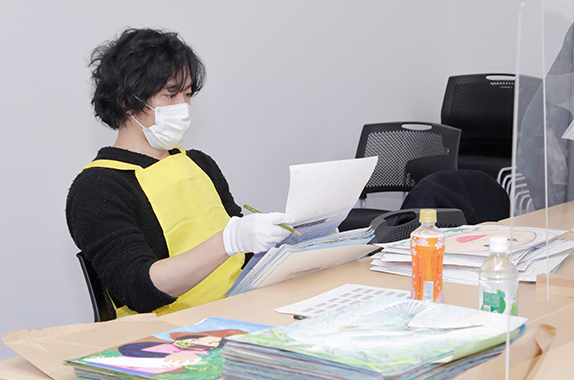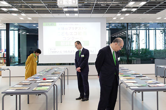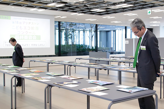 第18回ブリヂストンこどもエコ絵画コンクール審査会の様子、