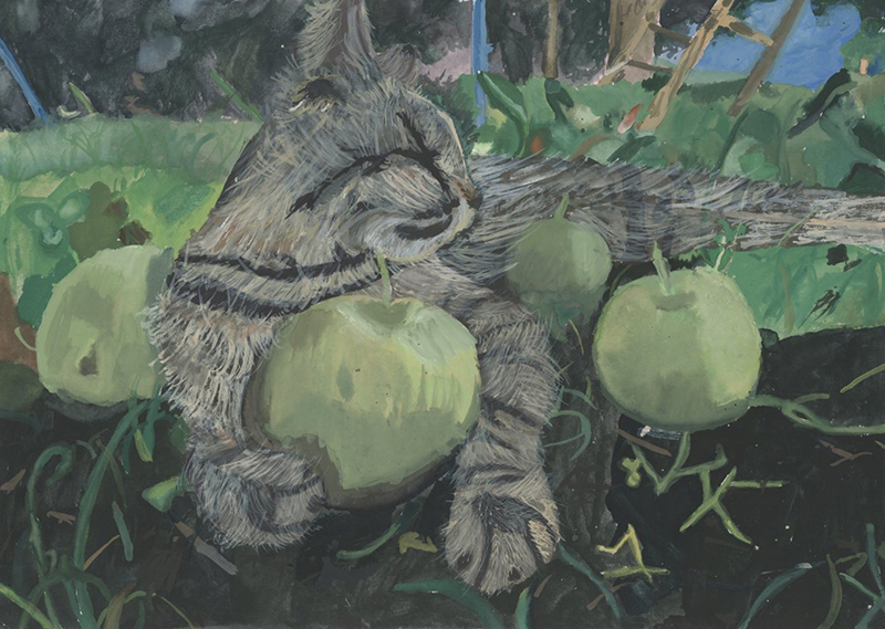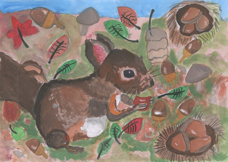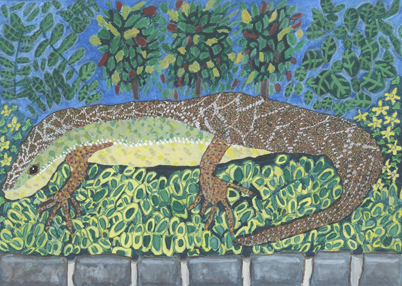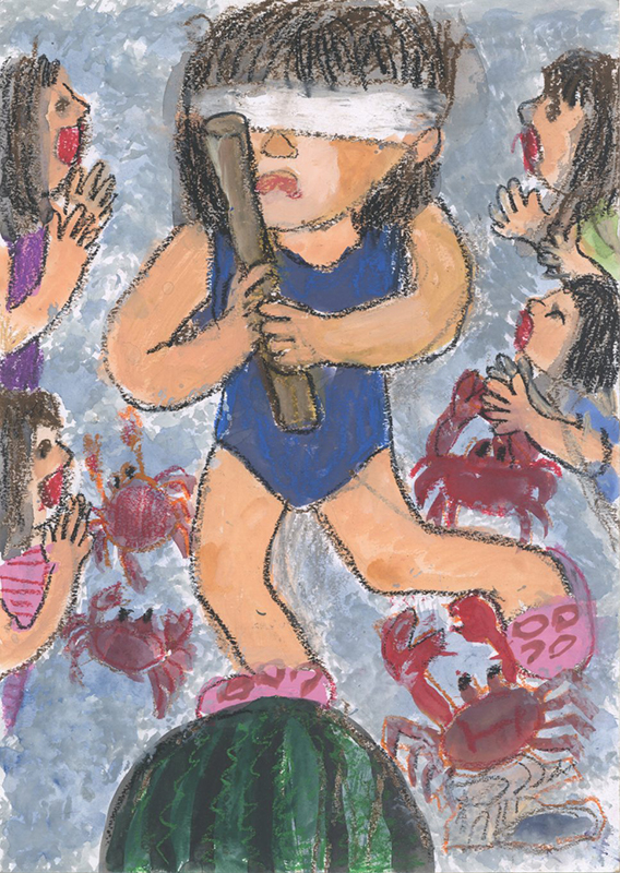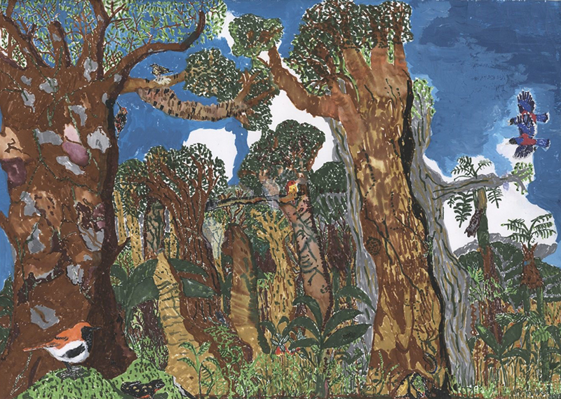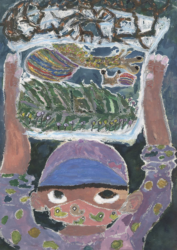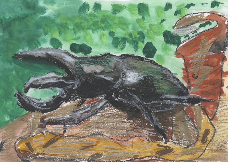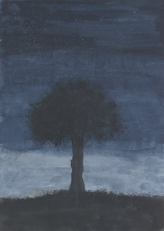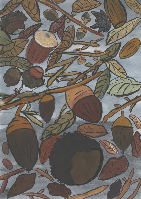 家の近くに天然記念物のシラカシの木があります。ぼくたち3兄弟は、そこでよく遊びます。ぼくたちの成長をいつも大きくて優しい気持ちで見守ってくれているように思い、描きました。