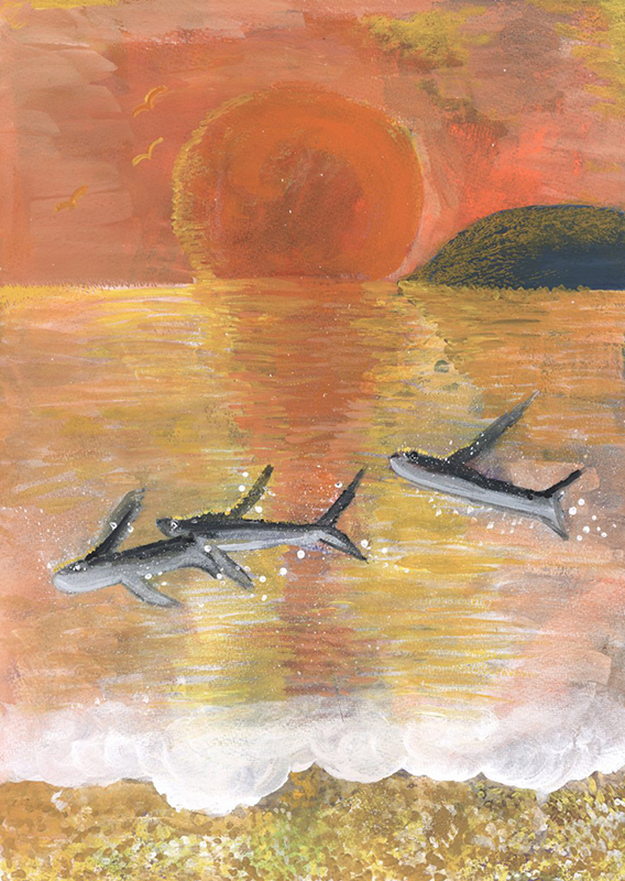 大きな夕日が楽しそうに元気に海からとびはねているトビウオたちをかがやかせていて、自ぜんって本当にすごなと思ったからです。