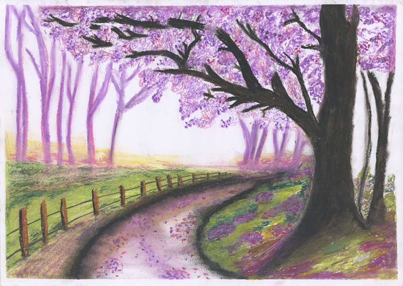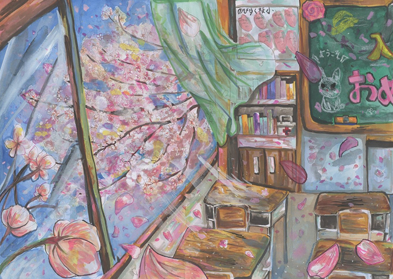 今、地球温だん化などが進んでいて、桜が見られなくなってしまう年があるのではないかと思い、伝えたい自然としてこの絵を描きました。