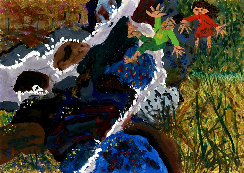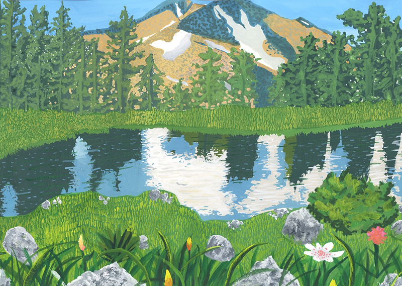 最初に写真を見て、目に入ってきたのがきれいなエメラルドグリーンの川でその周りに広がる景色は色とりどりでそのきれいな色のコントラストを自分で表現してみたいと思ったので、この絵を書きました。