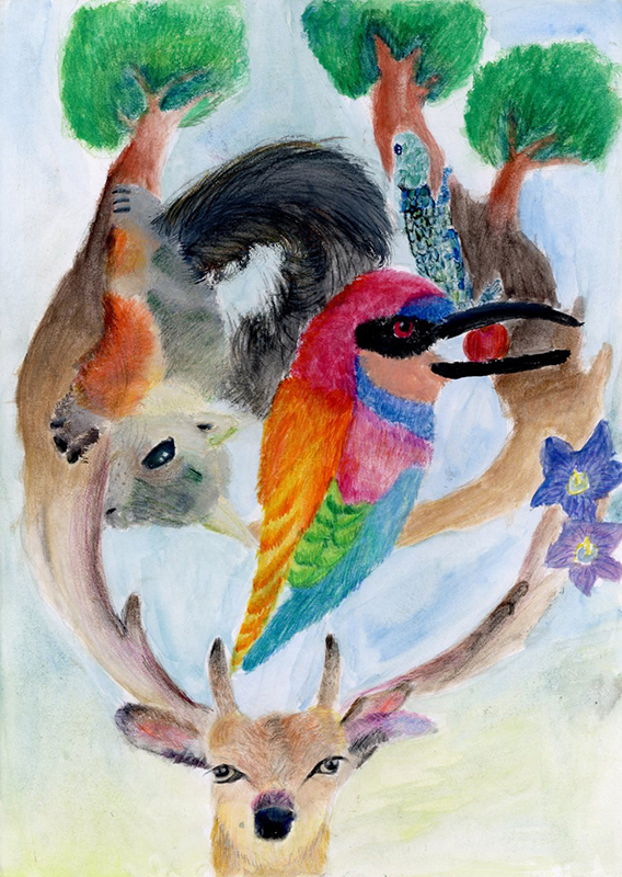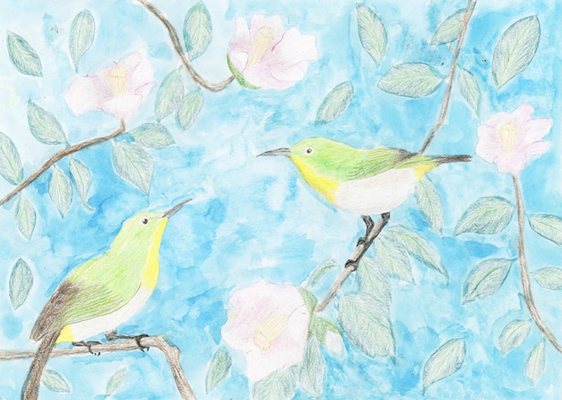 鳥が好きだし、きれいな鳥だから描きたいと思いました。