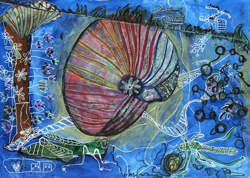 キャンプにいったときに見つけたカタツムリさんを心にのこしたかったから。