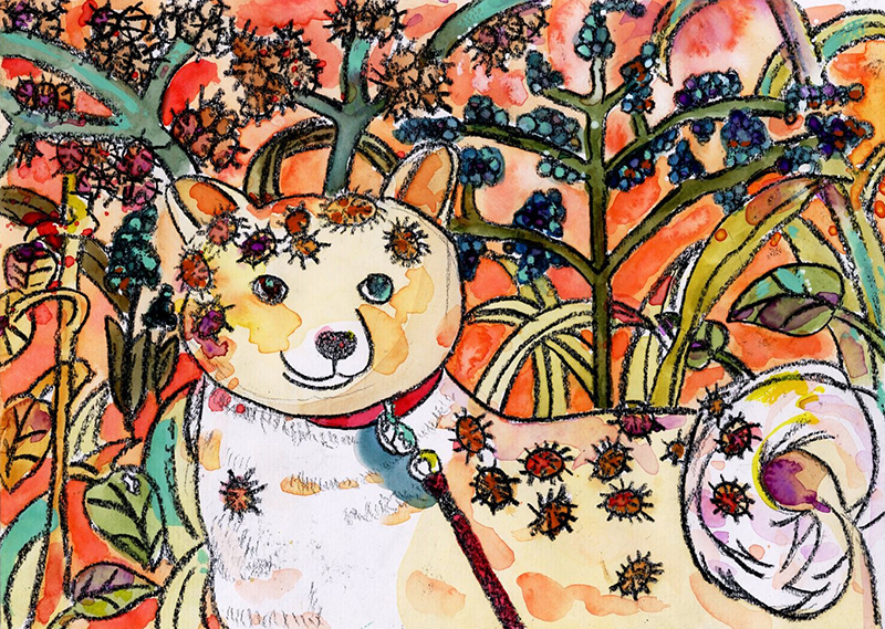 家の近くに彼岸花畑があり、毎年赤くなっているのを見るのを楽しみにしていたから描きました。