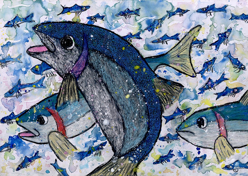 泥の中をしっかり生きているトビハゼなので描きたいと思いました。