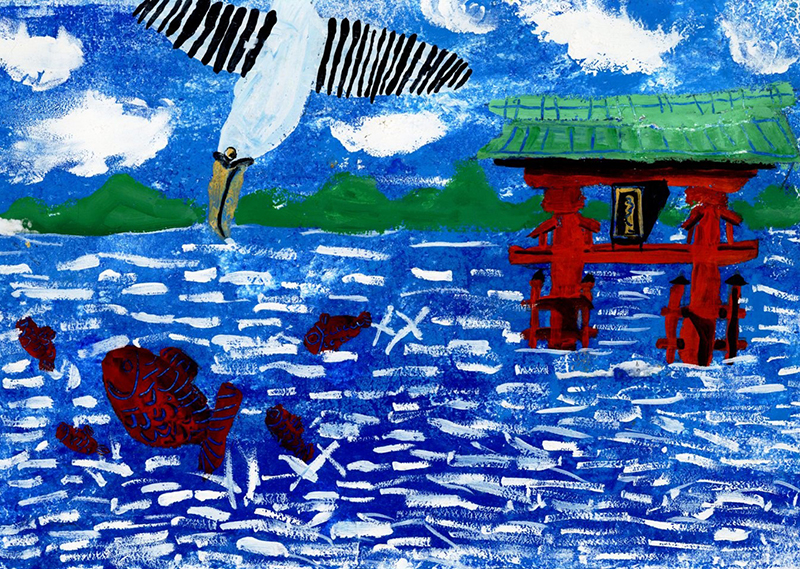 京都に旅行に行った時に、天橋立に行って、景色がきれいだったのでこの絵を描きたいと思ったからです。