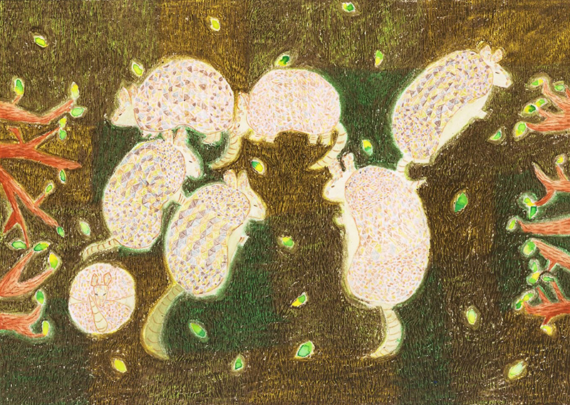 アルマジロの家族、丸まっているアルマジロやアルマジロの模様がかわいいと思います。