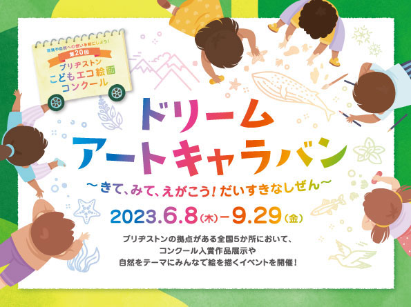2023年6月から9月まで、ブリヂストンの拠点がある全国5か所において、コンクール入賞作品の展示や、自然をテーマにみんなで絵を描くイベントを開催します!
