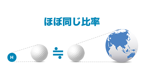 - ※1水素原子、ゴルフボール、地球の直径をそれぞれ約1億分の1cm、4cm、12,000kmとした場合。