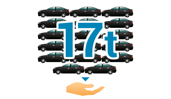手のひらに乗用車17台の重さがかかっているくらいの力(※3)