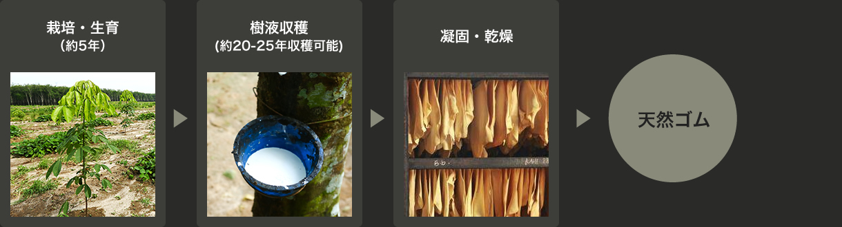 - ※1ブラジル原産のトウダイグサ科パラゴムノキ属の常緑高木。幹を傷つけて得られる樹液(ラテックス)に天然ゴムが含まれる。