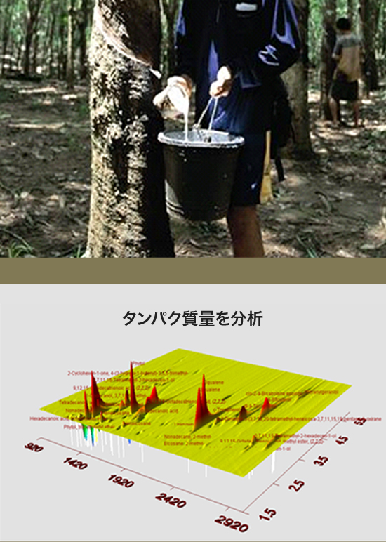 当社グループでは、パラゴムノキの保護と天然ゴムの安定供給のために、インドネシア技術評価応用庁及び複数の大学と連携し、早期に病害を診断する技術の開発を進めてきました。その結果、これまでに、植物病理学、分子生物学、生化学、分析化学、リモートセンシングといった複数領域にわたる4つの技術を確立。病害の早期発見や、病害のもととなる土壌中の病原菌の検出が可能になりました。