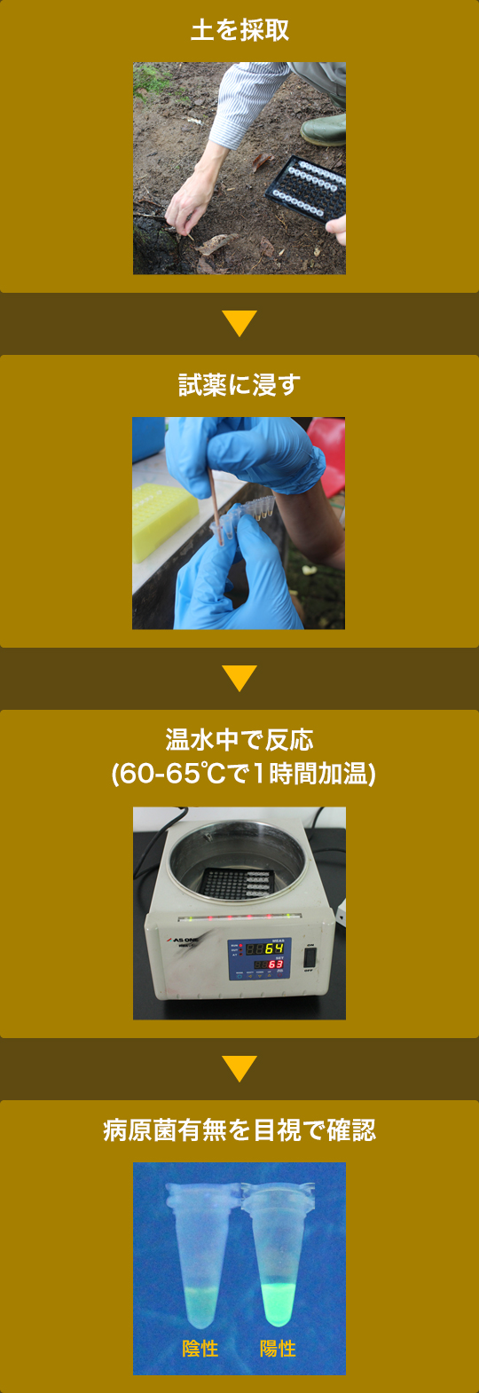 - ※2LAMP法 栄研化学株式会社が開発した遺伝子増幅法。土壌中の病原菌に特異的なDNA配列を増幅させ、検出するもの