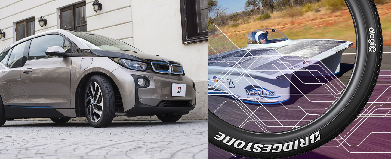 「ologic」技術を採用したタイヤ「ECOPIA with ologic」は、専用パタンやコンパウンドなどを組み合わせることで、ウェット路面や乾燥路面での高いグリップ性能も確保。BMWが開発した画期的な電気自動車BMW i3や世界最高峰のソーラーカーレース、Bridgestone World Solar Challengeに参戦するソーラーカーに採用されています。