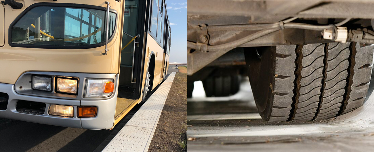 公共交通機関のひとつとして子どもから高齢者まで幅広く利用され、人の移動に重要な役割を果たしているバス。さまざまな人々が利用するが故に、バス輸送においては乗降時のバリアフリー化がとても重要です。しかしながらバス乗降口と停留所の間に段差や隙間があると、特に高齢者や車イス・ベビーカーを利用する人にとってスムーズな乗降が難しいという課題を抱えています。