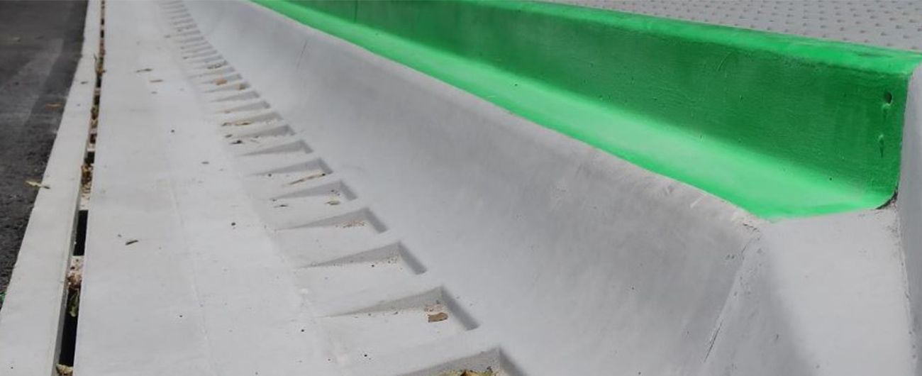 バス乗降口と停留所の間の段差や隙間を小さくするため、ブリヂストンは歩道と車道の境界に設けられている縁石に着目しました。一般的な縁石は、タイヤが接触するとタイヤの側面に傷をつける恐れがあり、バスを縁石に隙間なく近づけることはドライバーの心理的にも容易ではありません。そこでブリヂストンはパートナーと共同で、「ドライバーがバスを縁石に寄せやすく、また「接触した場合でもタイヤへのダメージが少ない」特殊な形状の縁石を開発しました。
