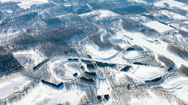 冬の過酷な気象条件の下、スタッドレスタイヤなど、冬用タイヤ開発のための様々な試験が行われています。